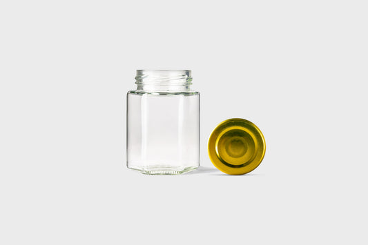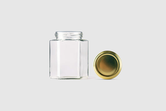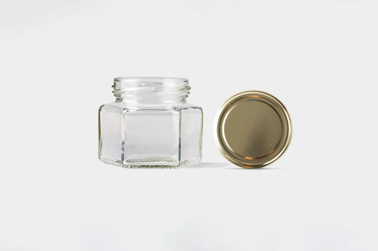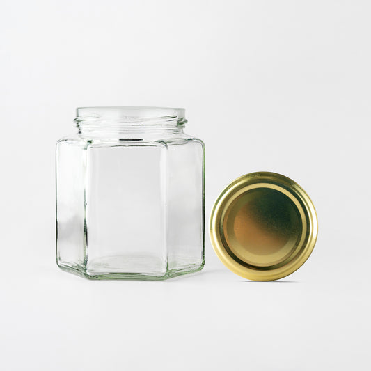 Our clear hexagonal glass jars are loved for their high quality, designs, versatility in use and affordability. We offer a variety of uniquely designed thick-wall hexagonal glass jars with lids suitable for a wide range of uses both in function and aesthetics. Explore a variety of sizes perfect for jams, honey, jellies, or dessert and other food products, like sauces, homemade chutneys, caramel and chocolate. These clear hexagonal jars are also great for candle jars.