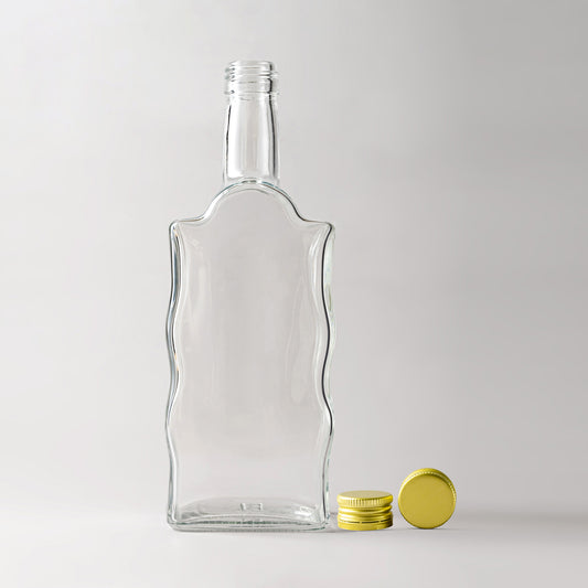 Introducing the aptly named range of Unique Decorative Glass Bottles. With this range, we choose to express individuality through the shapes of these beautiful decorative glass bottles. For starters, we give you the Violino line of decorative glass bottles. Shaped like a Violin, these glass bottles offer the eye an intriguing treat making them desire to possess it and experience the sweet nectar it holds inside. To fulfill this need, this line comes with the option of holding a capacity of 200ml and 500ml. The other eye sensation is the Onda glass bottle. Coming at a capacity of 250ml, this glass bottle comes in a beautiful figure 8, with a uniquely slim waist that provides the beholder the perfect grip, allowing them to pour it out with absolute satisfaction. The Stof 500ml glass bottle also offers the consumer an interesting sight. It is designed with a long capable neck, resting on a curvy middle base that flows in waves all the way to its capable wide base, granting the illusion of a strong capable bottle, meant to hold a strong drink. Finally, we offer you the Icon glass bottles. These are made in an elegant flowing design that starts out thin and long at the neck, graduating to a full width and flowing down to a slimmer base. It gives off an aura of elegance creating a need to hold a nice smooth drink that satisfies the thirst as much as the bottle satisfies the senses. We offer you this classy elegance in a capacity of 500ml and 250ml.